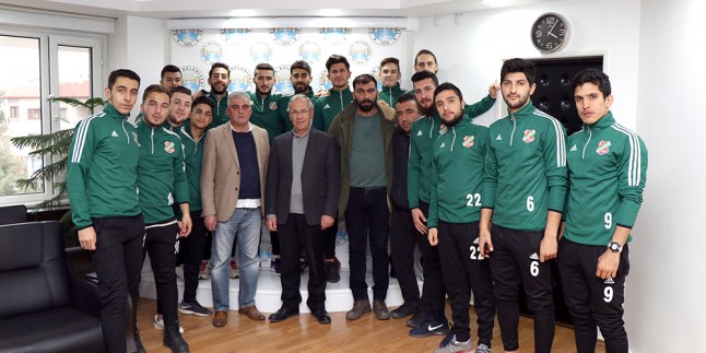 Dinar Belediye Spor Yönetim Kurulu Başkanı Muammer Mazlum yönetim kurulu üyesi Hasan Özçelik, Teknik Direktör Muhammet Yılmaz ve takım oyuncuları ile birlikte Belediye Başkanı Saffet Acar’a ziyarette bulunarak, spora ve sporcuya vermiş olduğu maddi ve manevi desteklerden dolayı teşekkür ettiler. Başkan Acar ziyaretten duyduğu memnuniyeti dile getirerek, amacın; gençleri kötü alışkanlıklardan uzak tutarak spora çekmek ve topluma kazandırmak olduğunu belirterek, takıma başarılar diledi.