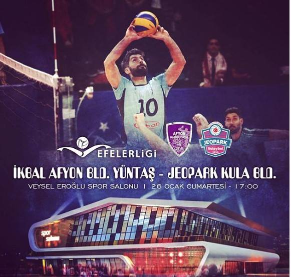 Voleybol Efeler Ligi’nde mücadele eden temsilcimiz İkbal Afyon Belediye YÜNTAŞ, bugün sahasında Jeopark Kula Belediyesi ile karşılaşacaktır. Takımımıza başarılar dileriz.