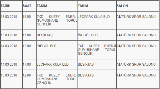 Efeler Ligi Baraj Etabı 2. Devre Müsabaka Programı şöyle;