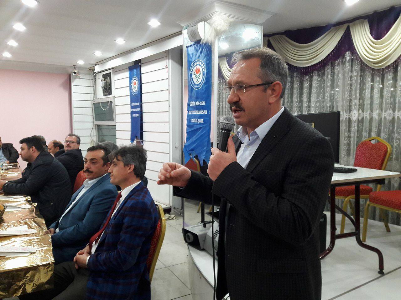 Eğitim Bir-Sen Afyonkarahisar 1 Nolu Şube Başkanı Abdullah ÇELİK, Mehmek Akif Ersoy’un “Muallimim diyen olmak gerektir imanlı, edepli, sonra liyakatli, sonra vicdanlı… Bu dördü olmadan olmaz: Vazife çünkü büyük” dizeleriyle katılımcıların Öğretmenler Günü’nü kutladı. Sendikacılığın önemine değinen Abdullah ÇELİK “Gerçek örgütlenme, hem özlük hakları hem de değerler sendikacılığı mücadelesini birlikte yürütmektir ki, Eğitim-Bir-Sen’in bütün çabaları bu temel hakları muhafaza etmeye ve daha da ileriye taşımaya yöneliktir. Örgütlenmenin ne kadar önemli olduğu 15 Temmuz hain darbe girişimine karşı verilen şanlı mücadelede bir kere daha gördük. Eğitim Bir-Sen olarak hain kalkışmanın ilk gecesinden itibaren meydanlarda, sokaklarda, sahada olan eğitim sendikası olduk. Türkiye’nin en büyük yetkili sendikası olarak tüm kritik süreçlerde milletle beraber en önde saf tutmaya devam edeceğiz.” dedi.