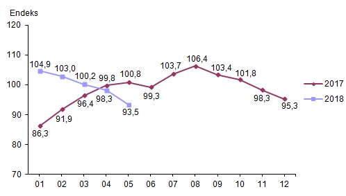 Ekonomik güven endeksi Mayıs ayında bir önceki aya göre %4,9 oranında azalarak 98,3 değerinden 93,5 değerine düştü. Ekonomik güven endeksindeki düşüş, tüketici, reel kesim (imalat sanayi), hizmet, perakende ticaret ve inşaat sektörü güven endekslerindeki düşüşlerden kaynaklandı.