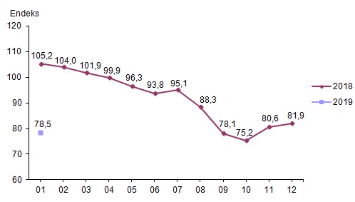 Ekonomik güven endeksi 2018 Aralık ayında 81,9 iken, 2019 Ocak ayında %4,2 oranında azalarak 78,5 oldu. Ekonomik güven endeksindeki düşüş, tüketici, reel kesim (imalat sanayi), hizmet ve perakende ticaret sektörü güven endekslerindeki düşüşlerden kaynaklandı.
