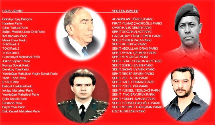 Emirdağ Belediyesi tarafından ilçemizde bulunan parklara 01.03.2018 tarihi belediye meclisi kararıyla gazi ve şehitlerimizin isimleri verildi.
