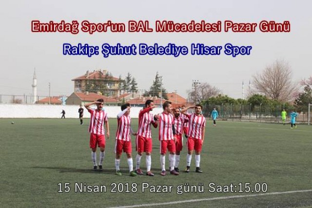 2017/2018 yılının Afyonkarahisar Süper Amatör Lig Şampiyonu Emirdağ Spor, Bölgesel Amatör Lig yolunda play-off karşılaşmasını 15 Nisan 2018 Pazar Günü Bölgesel Amatör Lig'de istediği sonuçları elde edemeyerek Sandıklı Spor'un altında ligi tamamlayan Şuhut Hisar Belediye Spor ile oynayacağı bildirildi.