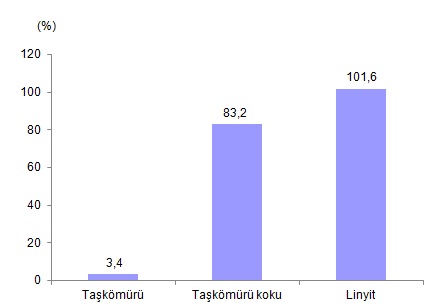 Üretilen katı yakıtların teslimatları karşılama oranı(3) %3,4 ile en düşük taşkömüründe gerçekleşti. Bu oran taşkömürü kokunda %83,2 iken linyitte %101,6 olarak hesaplandı.