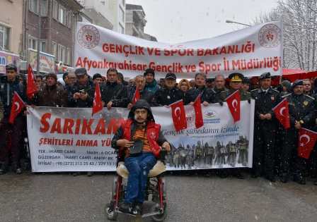 Afyonkarahisar Gençlik Hizmetleri ve Spor İl Müdürlüğü tarafından Kars'ın Sarıkamış ilçesinde donarak can veren şehitleri anmak için 'Sarıkamış Şehitlerini Anma Yürüyüşü' etkinliği düzenlendi.