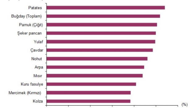 Yenilebilir kök ve yumrular grubundan patateste yeterlilik derecesi %108,2, yağlı tohumlar ürün grubundan ayçiçeğinde %64, soyada %7,1 ve kolzada %76,7 düzeyinde oldu.