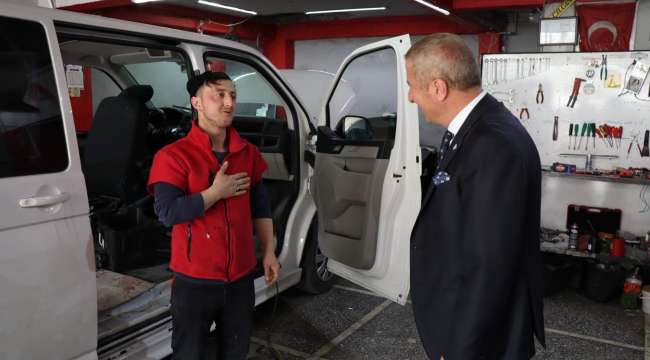 Sanayi sitesinde bulunan dükkânları teker teker ziyaret ederek esnaflarla sohbet eden Olgun, esnafların sorun, talep ve önerilerini dinledi.