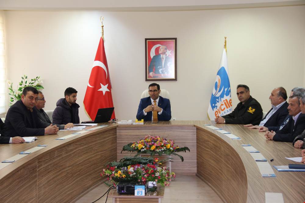 Kaymakamlık Toplantı Salonunda düzenlenen toplantıda; seçim takvimi, seçmen kütüklerinin ilanı, seçim süreciyle ilgili olarak seçime kadar, seçim günü ve sonrası alınacak tedbirler görüşüldü.