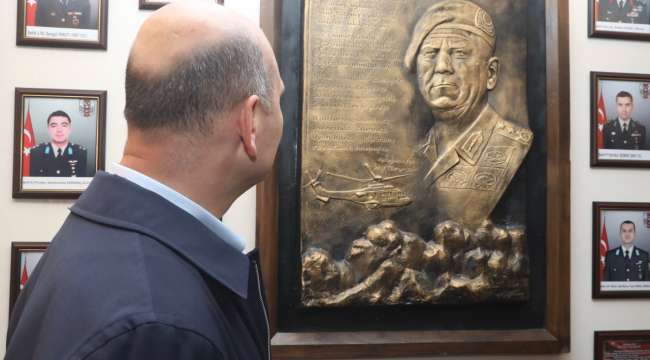 Bakan Soylu, tümen komutanlığı içerisindeki Şehitler Anıtı'nı da ziyaret etti.