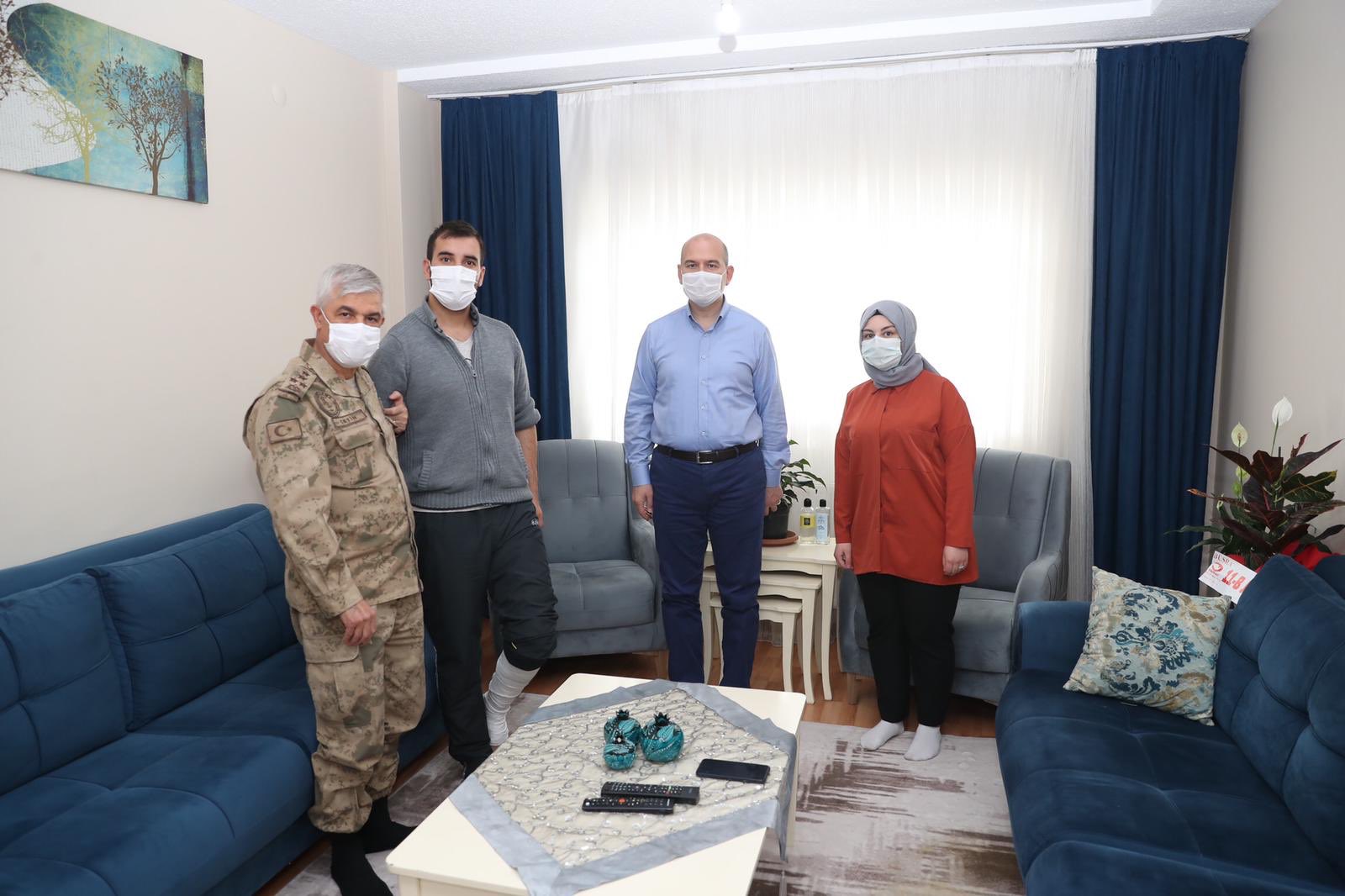 Bakan Süleyman Soylu, JÖH Tabur Komutanlığı ziyaretinden sonra Çeltikli Bölgesinde geçtiğimiz hafta gerçekleştirilen saldırıda yaralanan Jandarma Uzman Çavuş Murat Aydın’ı Tatvan’daki evinde ziyaret etti. Yaralı askerimize geçmiş olsun dileklerini ileten Bakanımız Süleyman Soylu ve beraberindeki heyet, askerimiz için Allah’tan şifa diledi.