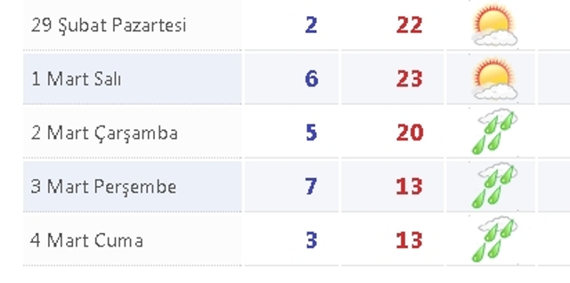 Afyonkarahisar’da bugün ve yarın bahara havası yaşanacak. Sıcaklıklar 22-23 dereceye çıkacak. Yapılan son değerlendirmelere göre, Afyonkarahisar ve çevresinde hafta ortasından itibaren sağanak yağışlar başlayacak. Yağışların hafta sonuna kadar sürmesinin beklendiği ilde sıcaklıklar da hissedilir derecede azalacak. Afyonkarahisar’da bugün 22, yarın 23 derece olarak ölçülecek hava sıcaklığı çarşamba gününden itibaren başlaması beklenen yağmurlarla birlikte düşecek. Sıcaklıklar hafta sonuna doğru 13 dereceye kadar inecek. Gece sıcaklıkları ise hafta sonunda 3 derece dolayında seyredecek.