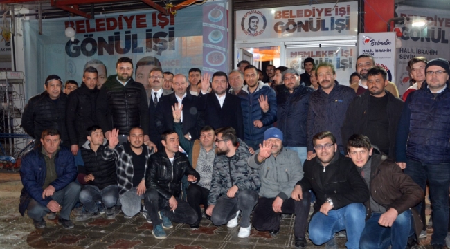 Burada partililere seslenen belediye başkan adayı Halil İbrahim Sevim, “Bugün sabah milletvekilimiz Sayın Ali Özkaya Bolvadin ilçemize geldi. Milletvekilimiz ile birlikte din görevlilerimiz ile bir araya geldik. Onlarla istişare ettik. Sonrasında yine teşkilatımızın emektarlarından Hasan Adak ağabeyimiz Sanayi esnafımız ile bizi bir araya getirdi. Yeni Sanayi Kooperatifimizde milletvekilimiz ile birlikte sanayi esnafını ziyaret ettik. Onlarla bir araya geldik. Öncelikle biz şunu söyleyelim; Değerli kardeşlerim bizim derdimiz sadece seçim sürecinde sivil toplum kuruluşlarıyla derneklerle bir araya gelmek değildir. Sanayi esnafımızın derdi bizim derdimiz. Biz bu dertlerin ne olduğunu gayet iyi biliyoruz ve Allah nasip ederse 1 Nisan'dan sonra da sık sık derneklerimiz ile sivil toplum kuruluşlarımız ile bir araya gelip bu dertlere elbirliğiyle çözüm üreteceğiz. Sanayimizin canlanması için birçok alanda yeni girişimlerde bulunacağız” dedi.