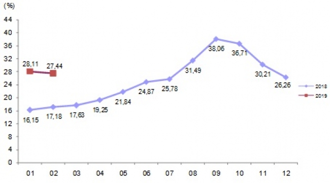 İnşaat maliyet endeksi (İME), 2019 yılı Şubat ayında bir önceki aya göre %0,91, bir önceki yılın aynı ayına göre %27,22 arttı. Bir önceki aya göre malzeme endeksi %1,24, işçilik endeksi %0,23 arttı. Ayrıca, bir önceki yılın aynı ayına göre malzeme endeksi %27,49, işçilik endeksi %26,66 arttı.