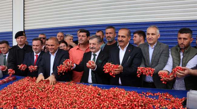 Sezonun ilk kirazı, sembolik olarak düzenlenen açık artırmada kilosu 800 TL'den alıcı buldu.
