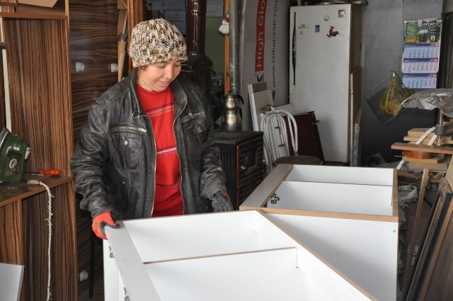 “Eşim genelde bütün işlerin üstesinden gelir. Çocuklarımıza daha iyi bir eğitim verebilmek için ortak çalışma kararı aldık. İşyerinde kazandığımız paraları çocuklarımıza harcayalım diyerek bu işe başladık ve çok güzel götürüyoruz. Gelen müşterilerimize çizimi eşim yapıyor. Montaj işini de beraber yapıyoruz ve bir şekilde işimizi devam ettirmeye çalışıyoruz. Ev işlerinde temizlik konusunda da eşime yardımcı oluyorum. Evi düzenleme ve yerleştirme işlerini de eşim yapıyor” dedi.