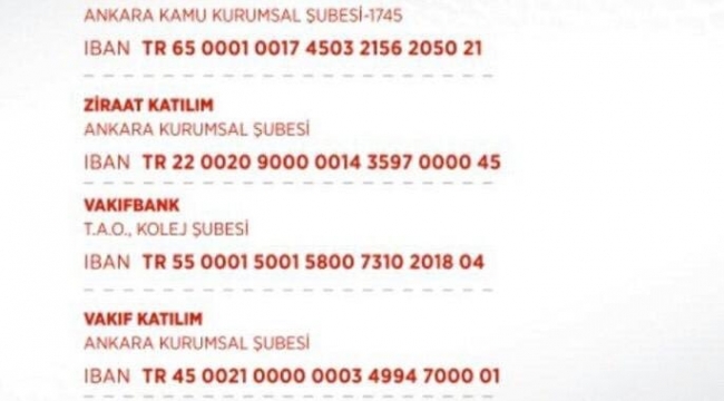 Milli Dayanışma Kampanyası için Aile, Çalışma ve Sosyal Hizmetler Bakanlığınca yardım hesabı açıldı. Ayrıca, kısa mesaj numaraları üzerinden de bağış yapılabilecek