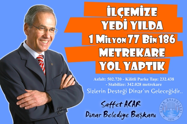 Dinar Belediye Başkanı Saffet Acar, geçtiğimiz yılda belediye olarak yaptıklarını afişler ve billboardlarla anlattı.