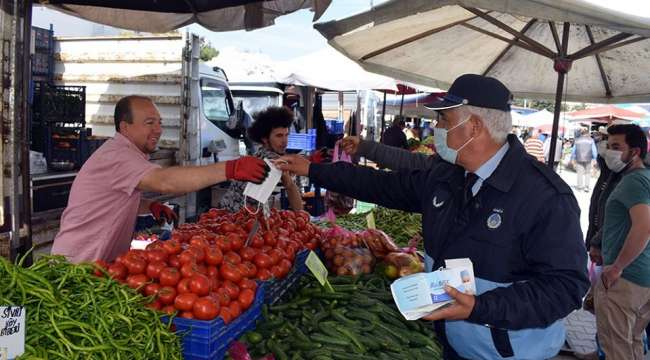 Tedbirler kapsamında; Pazara maskesiz gelen vatandaşlarımıza ve pazar esnafına maske dağıtımı yapılırken, denetim ve bilgilendirme yapılıyor.