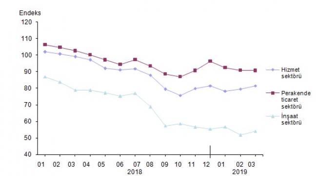 Mevsim etkilerinden arındırılmış perakende ticaret sektörü güven endeksi Mart ayında %0,1 oranında azalarak 90,7 oldu. Perakende ticaret sektöründe bir önceki aya göre; iş hacmi-satışlar beklentisi endeksi %3,9 azalarak 82,1 oldu. İş hacmi-satışlar ve mevcut mal stok seviyesi endeksleri ise sırasıyla %4 ve %0,2 artarak 77 ve 112,9 değerlerini aldı.