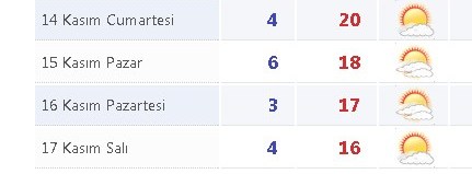 Afyonkarahisar’da ise bugünden itibaren sis ortadan kalkacak. Sıcaklıkta gelecek hafta ortalarına kadar ciddi bir değişiklik beklenmiyor. Afyonkarahisar’da gündüz sıcaklığı 18, gece sıcaklığı 3 derece dolaylarında seyretmeye devam edecek.●Kurtuluş/iha