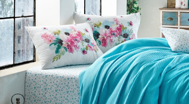 Avrupa standartlarına uygun baskı ve boyama aşamalarında kimyasal hiçbir maddeye yer vermeyerek, ciltte alerji oluşumuna engel oluyor. Zengin renk ve desen skalası ile yatak odaları için farklı kombin seçenekleri oluşturuyor. Güne güzel bir atmosferde mutlu uyanmak için yatak odası dekorasyonunda bazı kriterler göz önünde bulundurulmalı. Özellikle sakin ve dinlendirici bir ortam oluşturmak için renklerin uyku düzeni üzerindeki etkisi göz ardı edilmemeli. Kişilerin farkında olmadan seçtiği renkler, ruh hali ve duygu durumu üzerinde etkili oluyor. Mavinin huzurunda derin bir uyku Mavi yatıştırıcı ve sakinleştirici özelliği ile yatak odalarında en çok kullanılan renklerden biri. Gökyüzü ve denizi çağrıştıran mavi, huzuru ve dinlenmeyi de temsil ediyor. Sakin bir uyku uyumak ve dinlenmiş olarak uyanmak için yatak odalarında maviye ağırlık verilmeli. Doğadan kopamayanların rengi yeşil Derin bir uyku için kendinizi doğa ananın kollarına bırakabilirsiniz. Doğanın rengi olarak bilinen yeşil, stresi yumuşatıyor ve kaliteli bir uyku geçirilmesini sağlıyor. Gün içindeki yorgunluğunuzu ve stresinizi yatak odanızda yeşile ağırlık vererek atabilirsiniz. Yeşil bir pike ile doğayı odanıza yansıtabilirsiniz. Güne enerjik başlamak için kırmızı Kırmızı, turuncu ve pembe gibi canlı tonlar, harekete geçme hissi uyandırıyor. Sabahları daha enerjik uyanmak ve güne daha zinde başlamak için bu renkleri tercih edebilirsiniz. Sakin bir atmosfer için Bej Hayatı ve toprağı temsil eden kahverengi güven hissi veriyor. Pudra, vizon ve bej rengi gibi toprak tonları doğal ve samimi bir atmosfer yaratıyor. Özellikle duvar boyasında çok tercih edilen bu renkler aydınlık ve genişlik hissi veriyor.