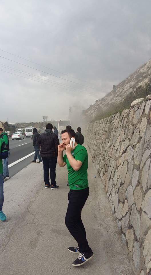 Sakaryaspor taraftarı tangalar tarafından yapılan açıklamda dumanlar içerisinde kalan otobüste ölen yada yaralananın olmadığı bildirildi.