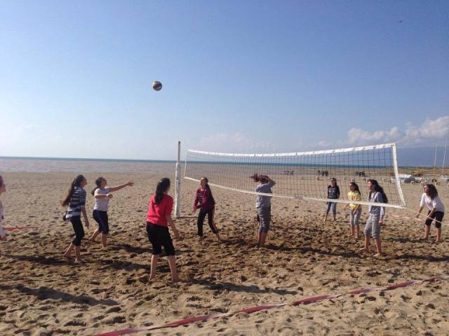 Edremit'te oynanan Anadolu yıldızları voleybol çeyrek final müsabakalarında ilimizi temsil eden kız voleybol takımı eğlenmek tende geri kalmıyorlar