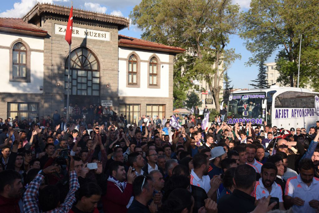 Cumhuriyet Meydanı'nda düzenlenen kutlamaya Belediye Başkanı Burhanettin Çoban, Afjet Afyonspor Kulüp Başkanı Salih Sel, Yönetim Kurulu Üyeleri, Belediyespor Kulüp Başkanı Abdullah Aydoğan, teknik heyet, futbolcular ve çok sayıda taraftar katıldı. Renkli görüntülere sahne olan Şampiyonluk kutlamasında taraftarlar dört yıl aradan sonra profosyonel lige çıkmanın keyfini çıkarttı. Takım otobüsüyle alan giren futbolcuları meşaleler ve tezahuratlarla karşılayan taraftarların sevinci görülmeye değerdi.