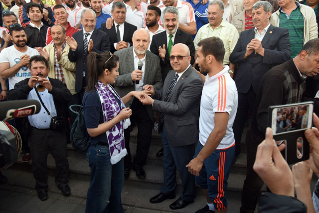 Kutlamalara damga vuran bir diğer gelişme ise Afjet Afyonspor'un başarılı futbolcusu İsmet Benli'nin kız arkadaşına yaptığı evlenme teklifiydi. İsmet Benli, arkadaşı Meryem Yavuz Hanımefendi'ye taraftarların önünde evlenme teklifi etti. Kutlama alanında büyük alkış alan evlenme teklifi sonrası Belediye Başkanı Burhanetin Çoban ve Afjet Afyonspor Kulüp Başkanı Salih Sel, genç çiftin yüzüklerini taktı ve mutluluklar diledi.