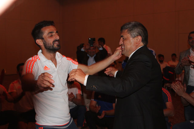 Yüzlerindeki mutluluk her halinden belli olan futbolcular bir sezonun yorgunluğunu sahnede oynayarak attılar. Oynamasını bilmeyenler oynayanlar tarafından tutularak havalara fırlatıldı. Neşeli atmosfere kısa sürede uyum sağlaması sağlandı. Havaya atılanlarda gruba katılarak sahnede uzun süre oynarken, gecenin ve sezonun kapanışı ise toplu olarak çekilen halaylar ile oldu.●Kurtuluş
