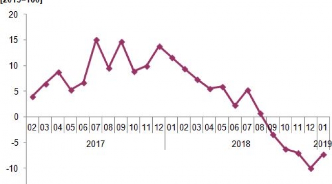 Sanayinin alt sektörleri (2015=100 referans yıllı) incelendiğinde, 2019 yılı Ocak ayında madencilik ve taşocakçılığı sektörü endeksi bir önceki yılın aynı ayına göre %7, imalat sanayi sektörü endeksi %7,5 ve elektrik, gaz, buhar ve iklimlendirme üretimi ve dağıtımı sektörü endeksi %1,7 azaldı.