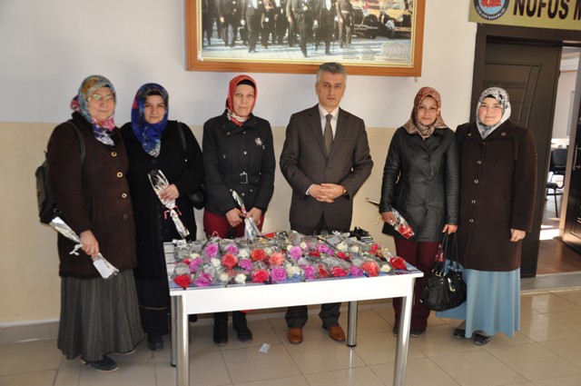 Kaymakam Arıcan, sabah saatlerinde Hükümet Konağında çalışan ve işi için gelen kadınlara karanfil hediye etti. Arıcan, yaptığı açıklamada: “Ülkemizin gelişmesinde ve ilerlemesinde büyük emekleri bulunan kadınlarımız, toplumsal ve ekonomik yaşamdaki gelişmelerin en temel öğesidir. Onlar toplumumuzun yapısını güçlendirip, şekillendirerek, aile birliğinin en önemli unsuru olarak daima özverinin, sevginin kaynağı olmuştur. Kurtuluş Savaşı’nda vatanımızın bağımsızlığı için erkeğiyle cepheden cepheye koşan kadınlar, Cumhuriyetimizin kurulmasıyla ve demokrasinin gelişmesiyle eğitimden sağlığa, yasama, yürütme ve yargıdan iş dünyasına kadar her alanda üstlendiği görevleri başarıyla yerine getirmiş, modern Türkiye’nin simgesi ve Cumhuriyetimizin en büyük teminatı olarak toplumsal yaşamda yerini almıştır. Kuşakların yetişmesinde büyük rol üstlenen kadınlarımızı, üstün bilgi seviyesi ve kültürel değerlerine bağlı, ahlaklı bireyleri yetiştirmek için gösterdikleri özveriden dolayı kutlar, tüm kadınlarımızın "8 Mart Dünya Kadınlar Günü"nü kutlar, sağlık, başarı ve huzurlu günler dilerim” dedi.