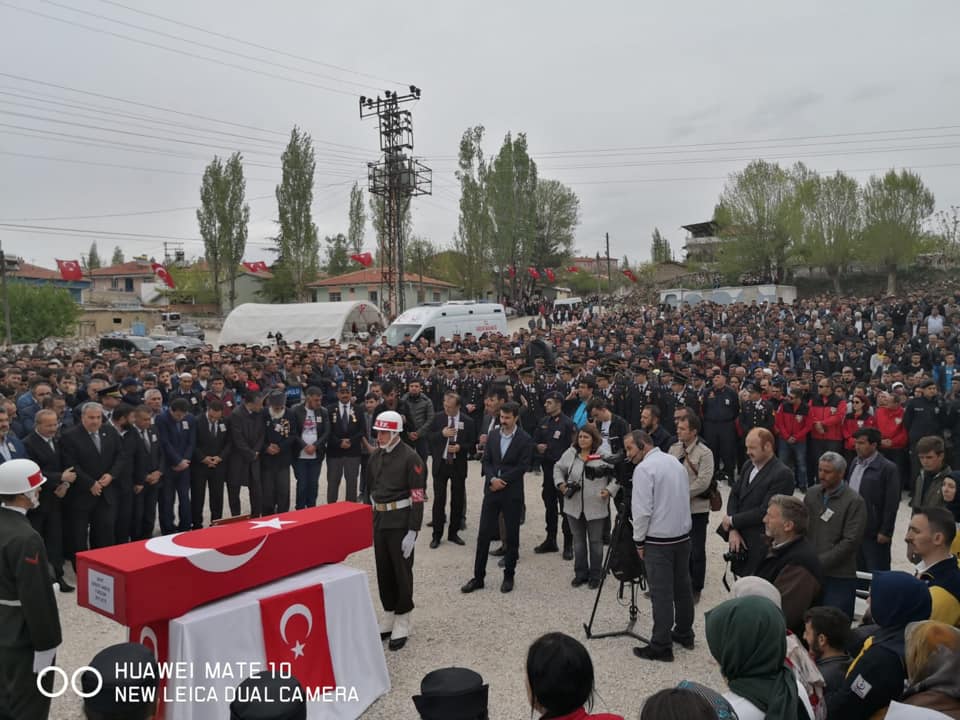 Şehidin ikindi vakti yapılan cenaze törenine Vali Mustafa Tutulmaz, Aile Çalışma ve Sosyal Hizmetler Bakan Yardımcısı Ahmet Koca, Demokrat Parti (DP) Genel Başkanı ve Afyonkarahisar Milletvekili Gültekin Uysal, Afyonkarahisar milletvekilleri AK Parti'li Ali Özkaya ve İbrahim Yurdunuseven, MHP'li Mehmet Taytak, Afyonkarahisar İkbal ve Garnizon Komutanı Tuğgeneral Özdemir Şan, Afyonkarahisar Belediye Başkanı AK Parti'li Mehmet Zeybek, Emniyet Müdürü Gürsel Yıldız, İl Jandarma Komutanı Albay Hamza Çömez, AKÜ Rektörü Prof. Dr. Mehmet Karakaş, askeri ve mülki erkan ile yaklaşık 6 bin kişi katıldı. İl Müftüsü Şükrü Kabukçu'nun kıldırdığı cenaze namazının ardından şehidin naaşı önce askerlerin omzunda, ardından kalabalığın elleri üzerinde taşınarak köy mezarlığına götürüldü ve burada toprağa verildi.