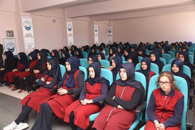 Öğrencilerin AKÜ ile ilgili merak ettiklerini sorma imkânını bulduğu söyleşinin sonunda Afyonkarahisar Kız Anadolu İmam Hatip Lisesi Müdürü Mustafa Akça tarafından Afyon Kocatepe Üniversitesi Rektörü Prof. Dr. Mustafa Solak’a hediye takdim edildi.