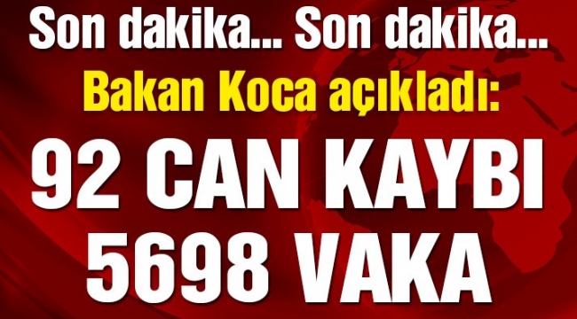 Son Dakika……Bugün itibariyle Vaka Sayısı 5 bin 698 can kaybı 92 oldu