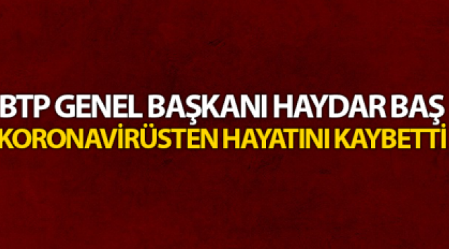 Bağımsız Türkiye Partisi (BTP) Genel Başkanı Haydar Baş , Trabzon’da tedavi gördüğü hastanede Corona Virüsü nedeniyle hayatını kaybetti.