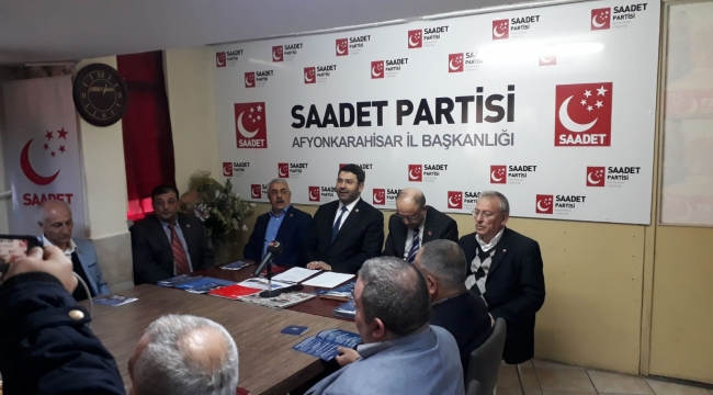 Saadet Partisi Afyonkarahisar Belediye Başkan Adayı hasan Hüseyin Uğurlu bir basın toplantısı düzenleyerek gündeme ilişkin değerlendirmelerde bulundu ve projelerini açıkladı. Bugüne kadar açıkladığı projelerle birlikte 24 projesini açıklamış Olan Uğurlu, “Bugün burada Milli Görüş belediyeciliğinin ilkelerini , hedeflerini ve projelerimizden bazılarını açıklayacağız. Siyerek sözlerine başladı.