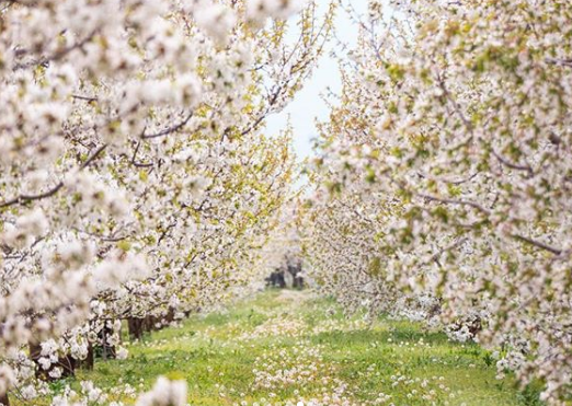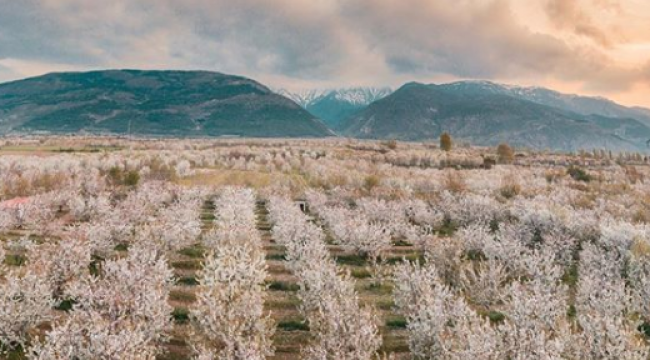 Yılda 40 bin ton kirazın üretildiği 22 bin hektarlık alanda bulunan bahçelerde çiçek açan kiraz ağaçları büyüleyici manzaralar oluşturdu.