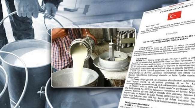 2020 Yılında Yapılacak Çiğ Süt Desteği ve Süt Piyasasının Düzenlenmesine İlişkin Cumhurbaşkanı Kararı, Resmi Gazete'de yayımlandı.
