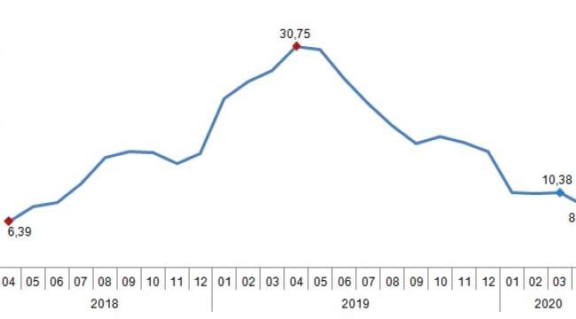 Tarım-ÜFE' de (2015=100), 2020 yılı Nisan ayında bir önceki aya göre %0,55 azalış, bir önceki yılın Aralık ayına göre %7,06, bir önceki yılın aynı ayına göre %8,58 ve on iki aylık ortalamalara göre %16,68 artış gerçekleşti.