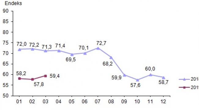 Türkiye İstatistik Kurumu ve Türkiye Cumhuriyet Merkez Bankası işbirliği ile yürütülen tüketici eğilim anketi sonuçlarından hesaplanan mevsim etkilerinden arındırılmış tüketici güven endeksi, Mart ayında bir önceki aya göre %2,9 oranında arttı; Şubat ayında 57,8 olan endeks Mart ayında 59,4 oldu.