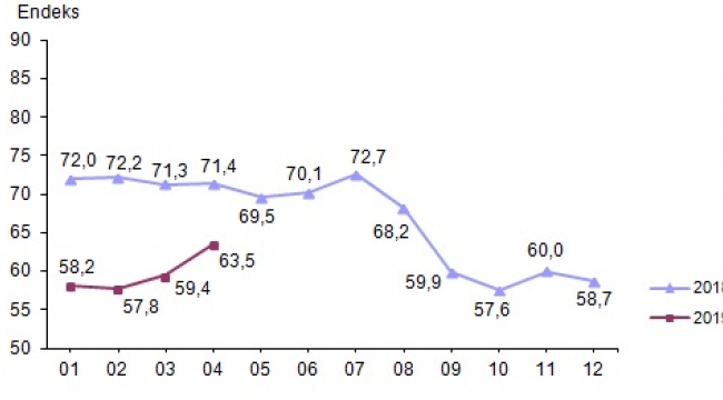 Türkiye İstatistik Kurumu ve Türkiye Cumhuriyet Merkez Bankası işbirliği ile yürütülen tüketici eğilim anketi sonuçlarından hesaplanan mevsim etkilerinden arındırılmış tüketici güven endeksi, Nisan ayında bir önceki aya göre %6,9 oranında arttı; Mart ayında 59,4 olan endeks Nisan ayında 63,5 oldu.