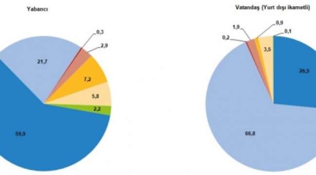 Bu çeyrekte yabancı ziyaretçiler ülkemizi %59,9 ile en çok "gezi, eğlence, sportif ve kültürel faaliyetler" amacıyla ziyaret etti