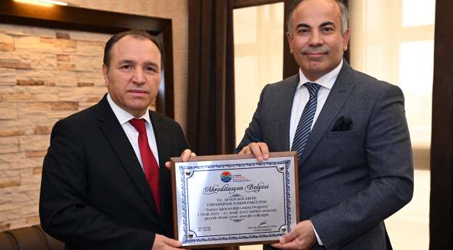 Turizm Akademisyenleri Derneği (TUADER) ve Turizm Eğitimi Değerlendirme ve Akreditasyon Kurulu (TURAK) Başkanı, Ankara Hacı Bayram Veli Üniversitesi Turizm Fakültesi Öğretim Üyesi Prof. Dr. Muharrem Tuna, Turizm İşletmeciliği programının Akreditasyon Belgesini takdim etmek üzere Afyon Kocatepe Üniversitesi (AKÜ) Rektörü Prof. Dr. Mehmet Karakaş’ı makamında ziyaret etti.