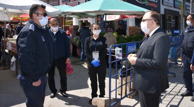 İçişleri Bakanlığı vatandaşların yoğun olduğu ve sosyal mesafenin en fazla ihlal edildiği yerlerden olan Pazar satış yerleri ile ilgili genelge yayınlayarak bu noktalarda da bir dizi tedbir uygulanmasına karar vermişti. Vali Mustafa Tutulmaz, alınan tedbirleri yerinde görmek amacıyla Mecidiye mahallesinde açılan cuma pazarını denetledi. Emniyet ve Zabıta ekiplerinden bilgiler alan Vali Tutulmaz, salgına karşı alınan tedbirlerin uygulanması ve sosyal mesafenin korunması hakkında talimatlarda bulundu. Vatandaşlara da uyarılarda bulunan Vali Mustafa Tutulmaz: “Tedbirlere uyduğumuz ölçüde sağlıklı kalırız ve bu virüsün daha fazla kişiye bulaşmasına engel oluruz. Lütfen zorunlu olmadıkça dışarı çıkmayalım, sosyal mesafeyi koruyalım, temizlik ve maske kullanımı gibi Bakanlığın uyardığı konularda tüm önlemlerimizi alalım. Koronavirüsle mücadelemizde başarılı bir sınav verelim” dedi.