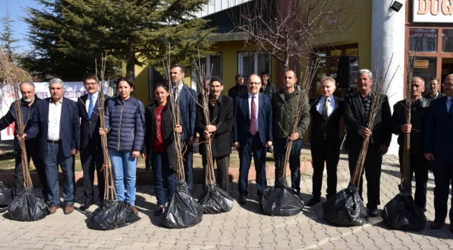Vali Mustafa Tutulmaz’ın konuşmasının ardından 150 çiftçiye 15 bin adet sertifikalı yarı bodur kiraz fidanı dağıtımı yapıldı.