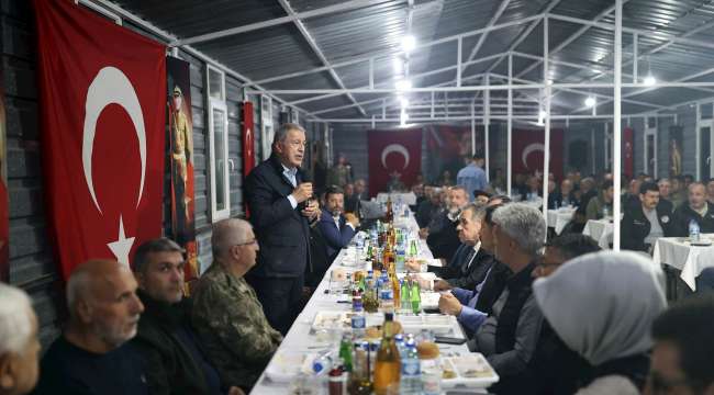 Deprem bölgelerinde herkesin üzgün olduğu bu dönemde kanaat önderlerine her zamankinden daha fazla görev düştüğüne dikkati çeken Bakan Akar, "Birliğimizi, beraberliğimizi, bireylerin moral ve motivasyonunu tahkim etmek için her zamankinden daha çok çalışmamız gerekiyor." diye konuştu. Hayatın normalleşmesine yönelik çalışmaların süratle devam ettiğini, kalıcı konutların, iş yerlerinin, hastanelerin temellerinin atıldığını aktaran Bakan Akar, "Depremde zarar gören tarihî ve dinî yapılar için de Kültür ve Turizm Bakanlığı ile Çevre Şehircilik ve İklim Değişikliği Bakanlığı özel bir gayretle, bu sorunları çözmek, tarihî ve dinî değerleri geleceğe taşımak için büyük bir gayret gösteriyor. Depremin neden olduğu bu yıkımın ardından 5 Şubat'taki Hatay ne ise modern teknoloji ve Türkiye Cumhuriyeti'nin tüm imkân ve kabiliyetini kullanarak çok daha ileri düzeyde bir Hatay'ın ortaya çıkması için büyük bir gayret var. İnşallah bunu da el birliği ile başaracağız." dedi. Bakan Akar, iftara katılan ve deprem bölgelerindeki çalışmaların koordinasyonunu gerçekleştiren valileri de "isimsiz kahramanlar" olarak nitelendirerek fedakârca çalışmalarından dolayı tebrik etti. Duaların okunduğu iftar sonrasında Bakan Akar tüm davetlilerle yakından ilgilendi. Öte yandan Bakan Akar, iftar öncesi Belen ilçesinde depremzedelerle bir araya gelerek onların taleplerini dinledi, Antakya’da Organize Sanayi Bölgesi yakınındaki Ötençay Mahallesi’nde AFAD koordinasyonu, Millî Savunma Bakanlığı ve NATO iş birliği ile kurulumu devam eden 2 bin 400 kişilik çadır kentte incelemelerde bulundu.